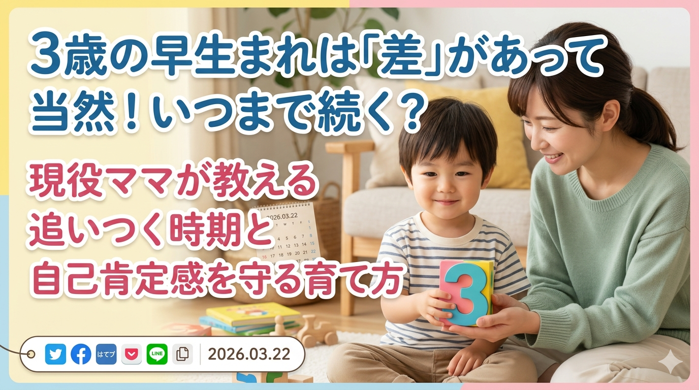 この記事では、3歳の早生まれ児が直面する「4つの壁」への向き合い方と、いつ頃周りに追いつくのかという見通しを、実体験を交えて詳しく解説します。